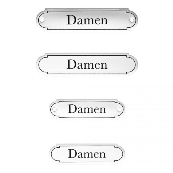 Unsere Türschild “Damen” in klassicher Form werden in Handarbeit hochwertig in Emaille produziert.