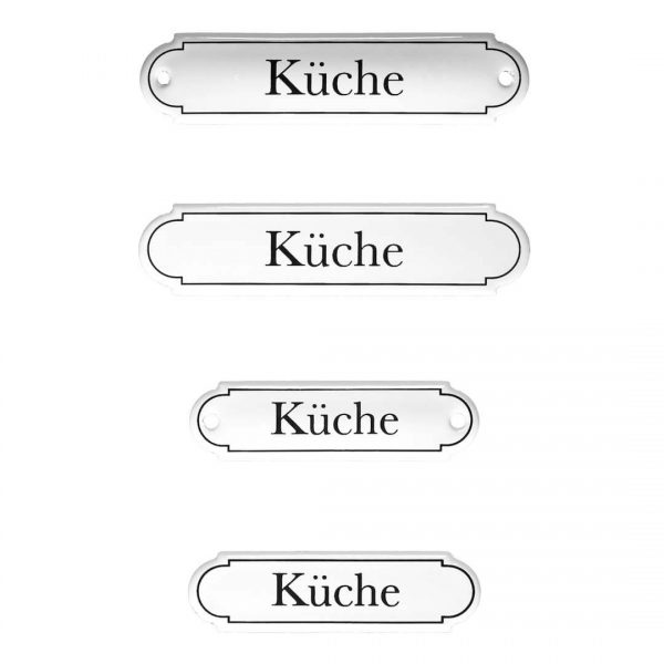 Unsere Türschild “Küche” in klassicher Form werden in Handarbeit hochwertig in Emaille produziert.